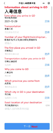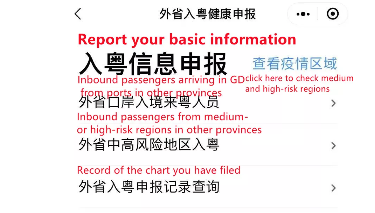 Those people mentioned above have to fill in a chart on the WeChat mini-program of “粤省事” (pinyin: Yue Sheng Shi) to report where you have been before entering Guangdong and answer the phone call or messages from 12320 when entering Guangdong. If you have missed the call from 12320, please call back within 48 hours.