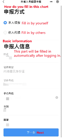 Your information in this chart is highly confidential and will only be used in epidemic prevention and control.